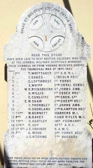 Kimberley: West End Cemetery Prevoiusly buried at Orange River Station. [B & de V] | |||