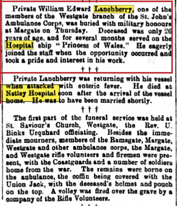 The Times 19 July 1900 - Enteric unless otherwise stated