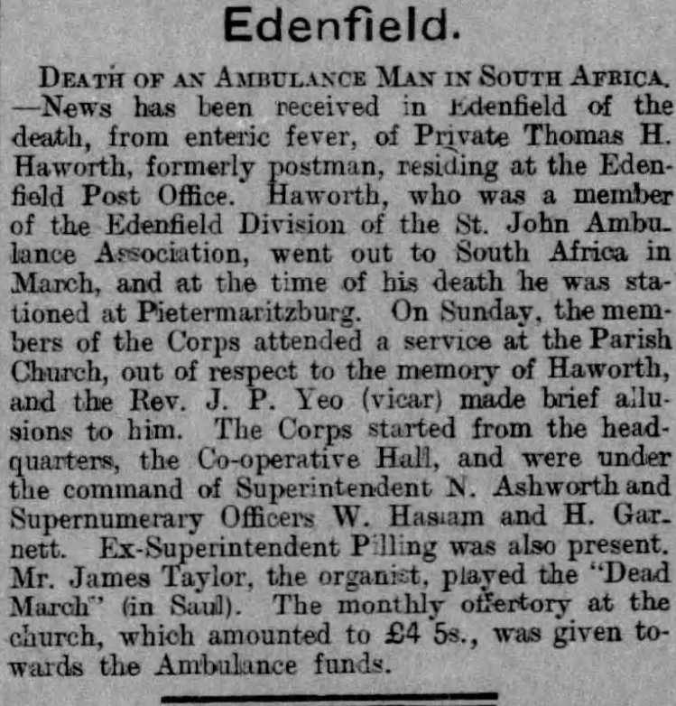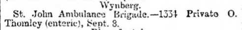 1334 orderly | oliver thornleyDied: 8th September 1900 at Wynburg of Enteric Fever aged 21 years. | royton division | |||
