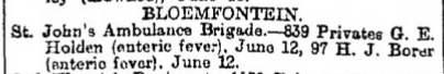 South African Field Force Casualty Roll: Died of Disease, Bloomfontein.